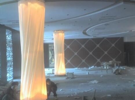 室內(nèi)膜結(jié)構(gòu)所使用的膜材采用特殊的聚氯乙烯材料制成,不含鎘,其防火級別為B1,通過一次或多次切割成形,并用高頻焊接完成,再按照在實地測量出的天花形狀及尺寸在工廠里生產(chǎn)制作而成。